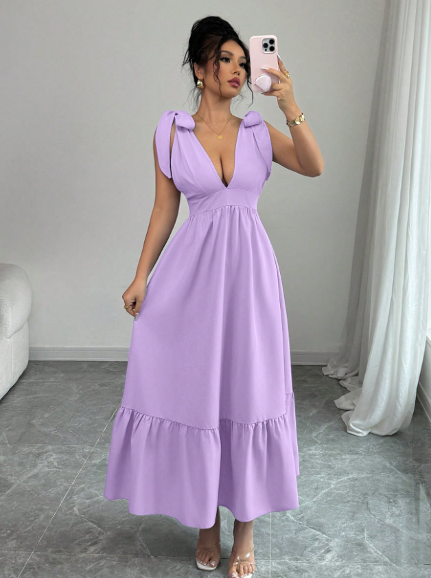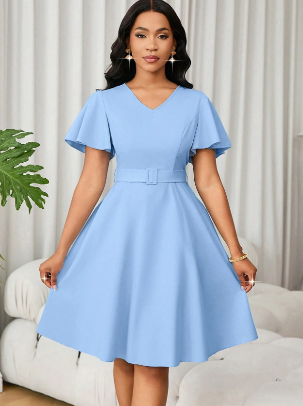 Vestido línea A con mangas abullonadas y unicolor elegante