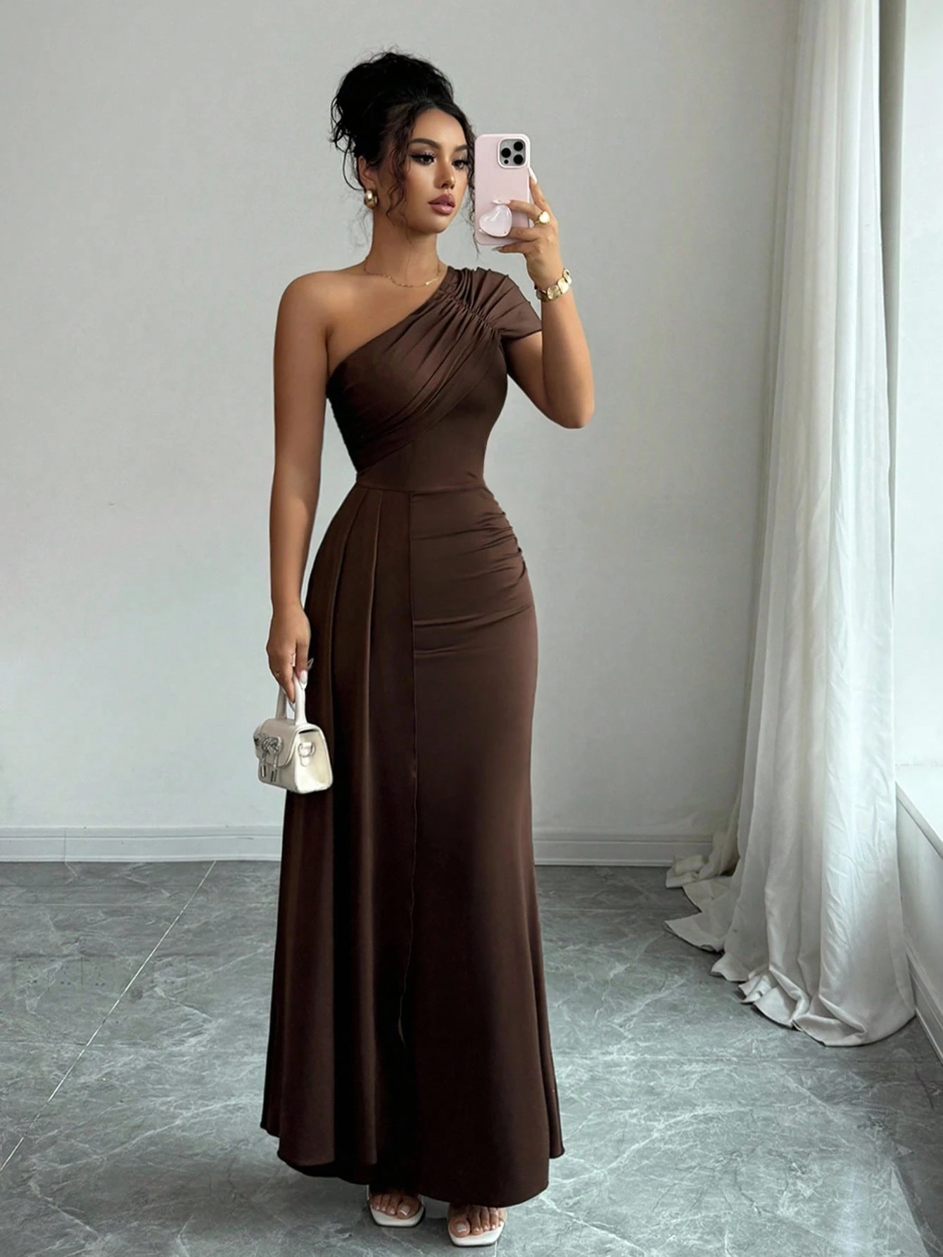 Vestido unicolor de cuello alzado con liga