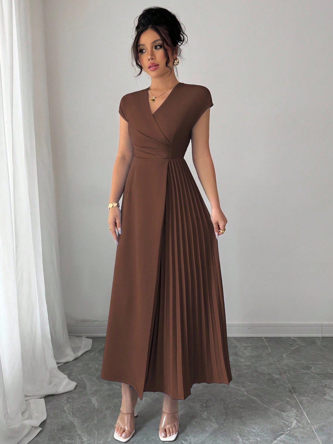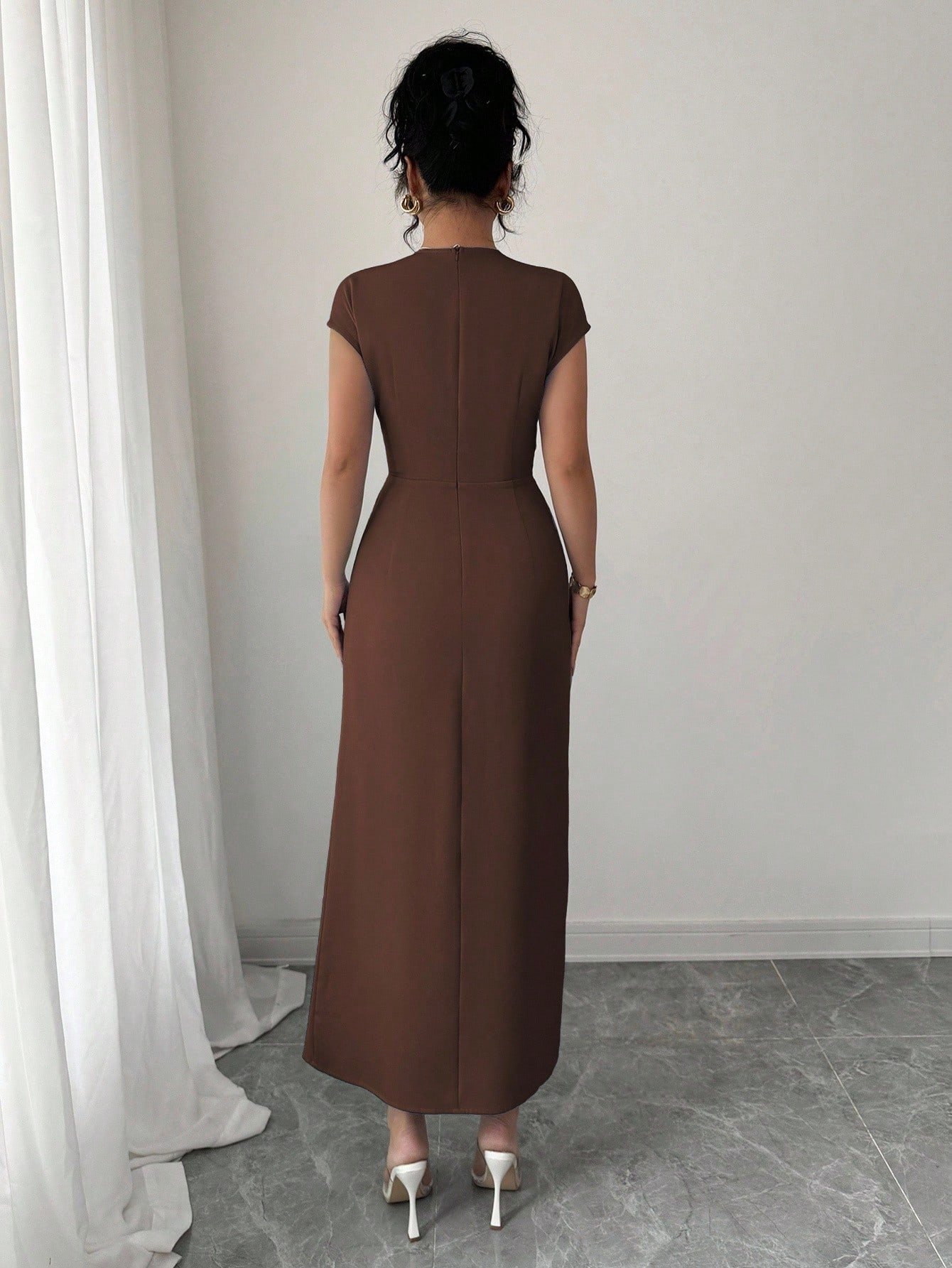 Vestido ajustado de cuello cruzado fruncido bajo con fruncido