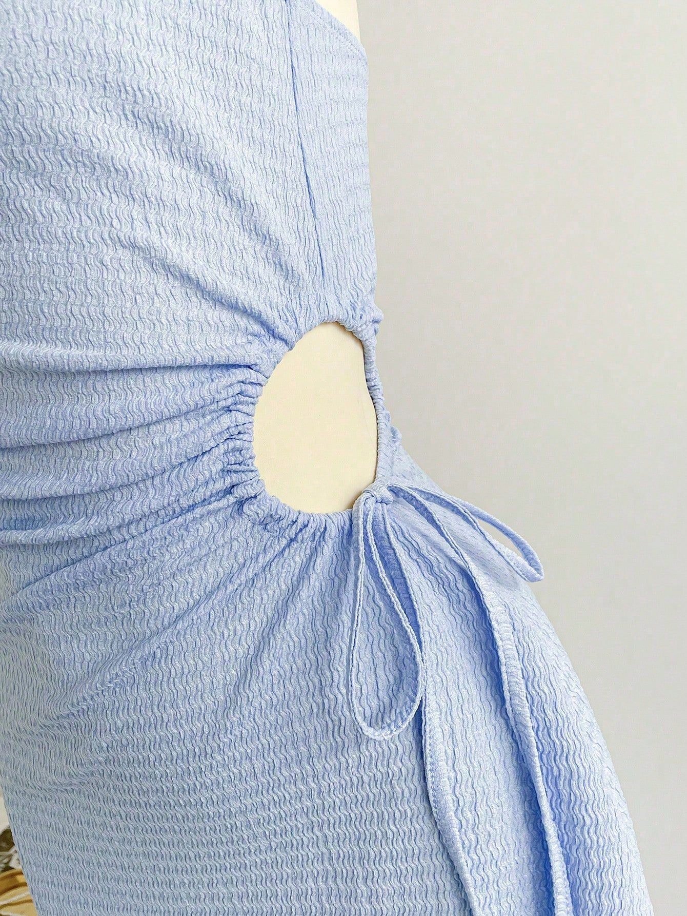 Vestido ajustado de cuello cruzado fruncido bajo con fruncido