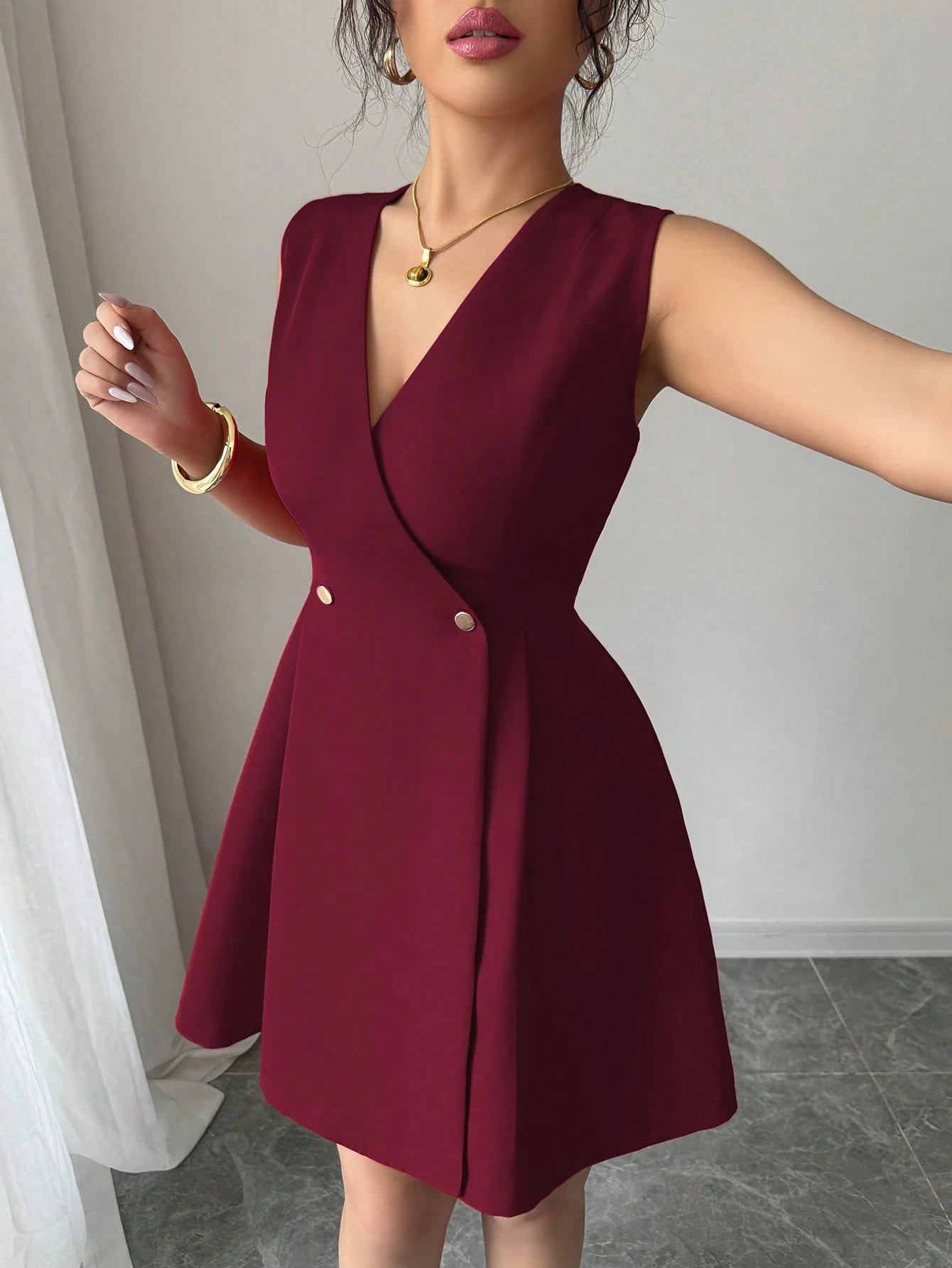 Vestido ajustado de cuello cruzado fruncido bajo con fruncido