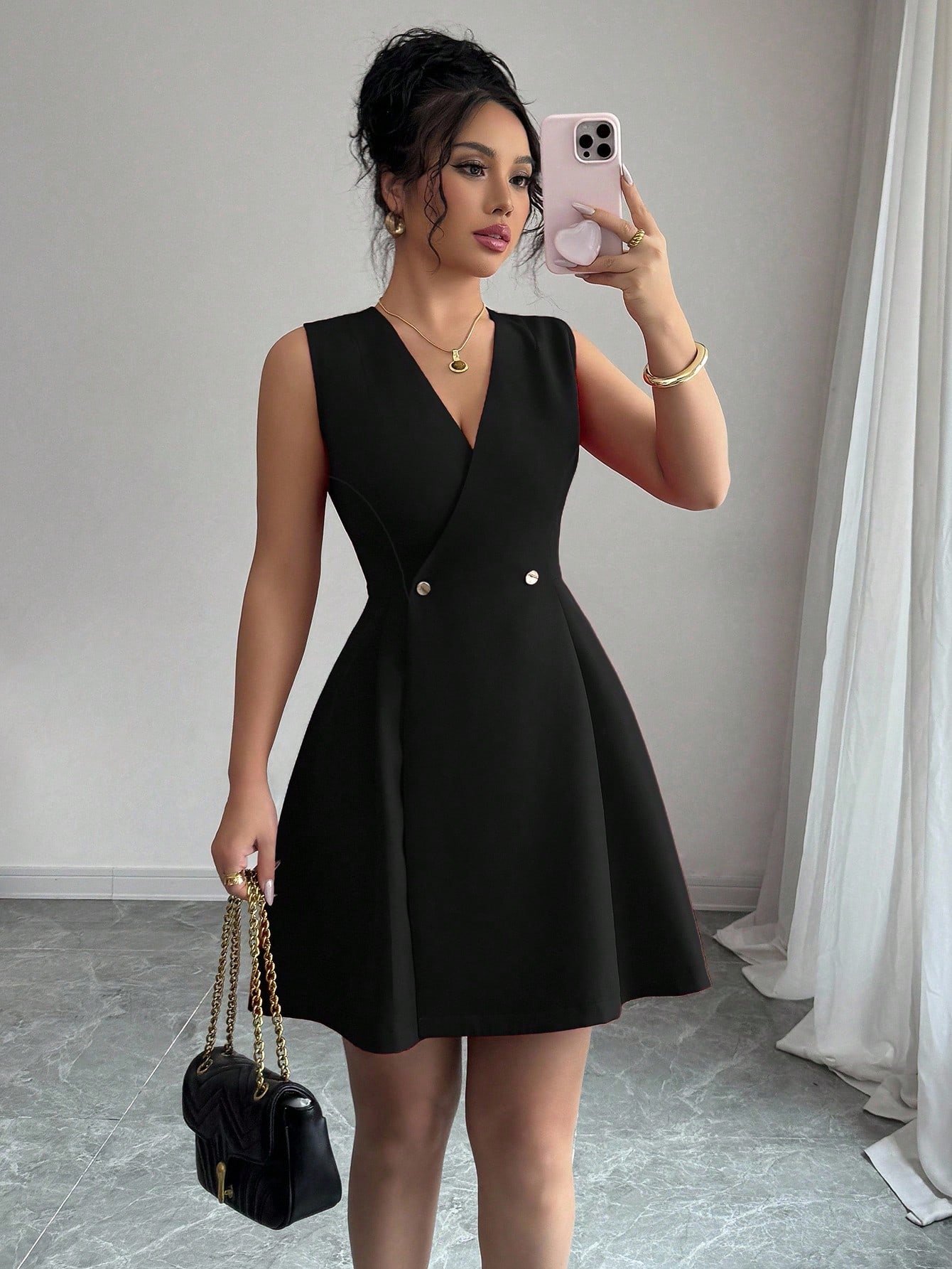 Vestido ajustado de cuello cruzado fruncido bajo con fruncido