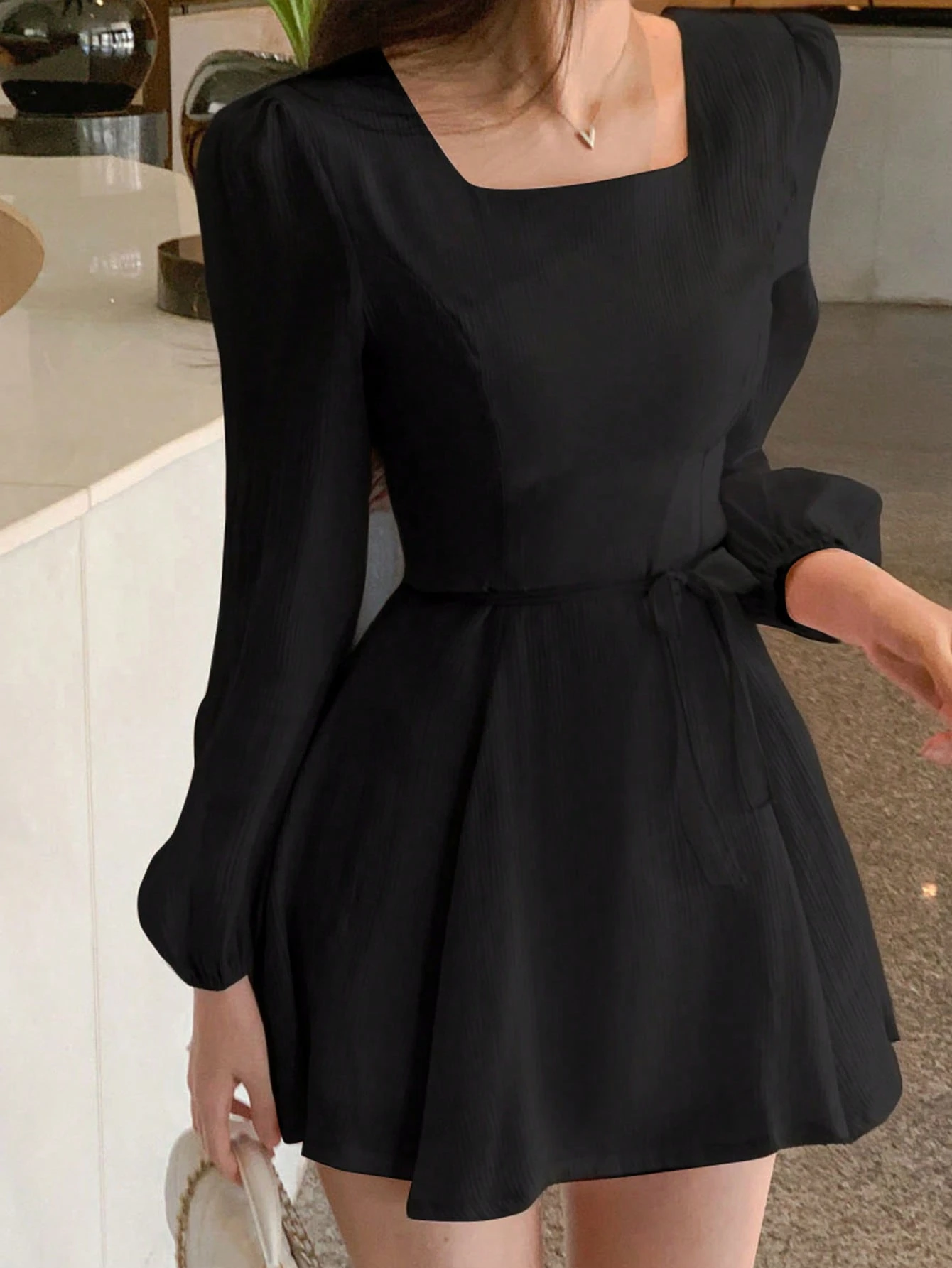 Vestido mini de manga larga con cuello redondo