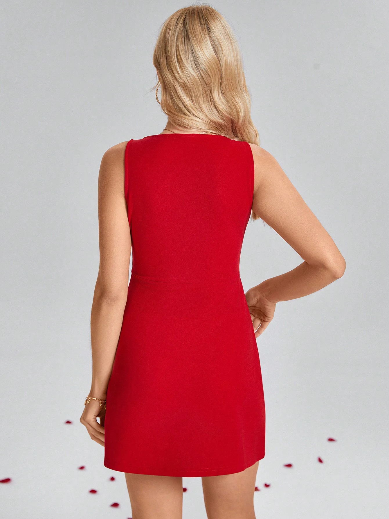 Vestido minifalda de patinadora con cuello de tripulación sin mangas