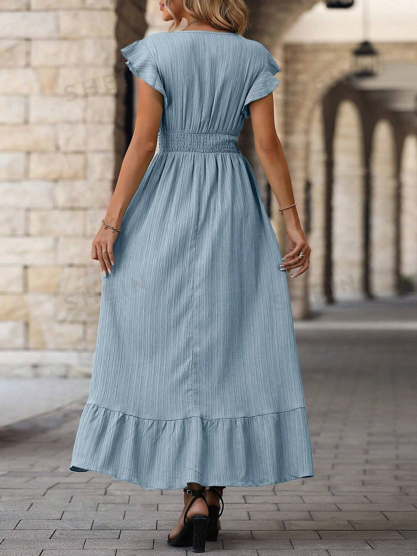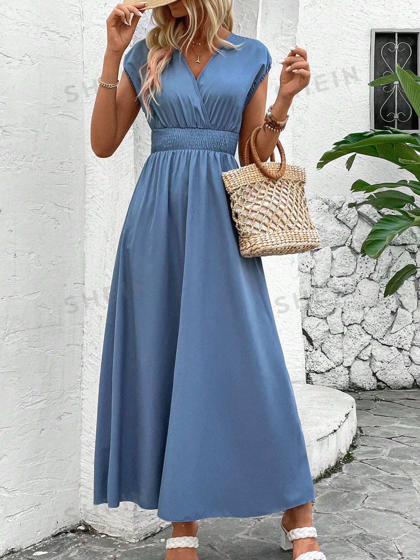 Vestido plisado en línea A de unicolor y ocio con cintura imperial