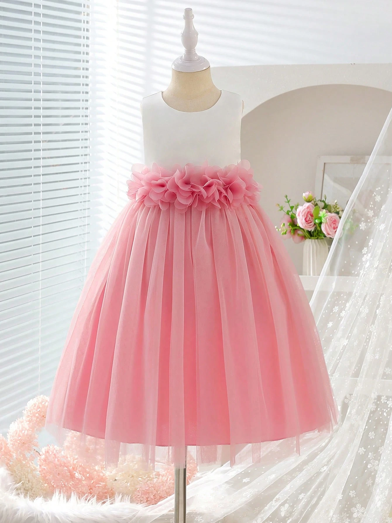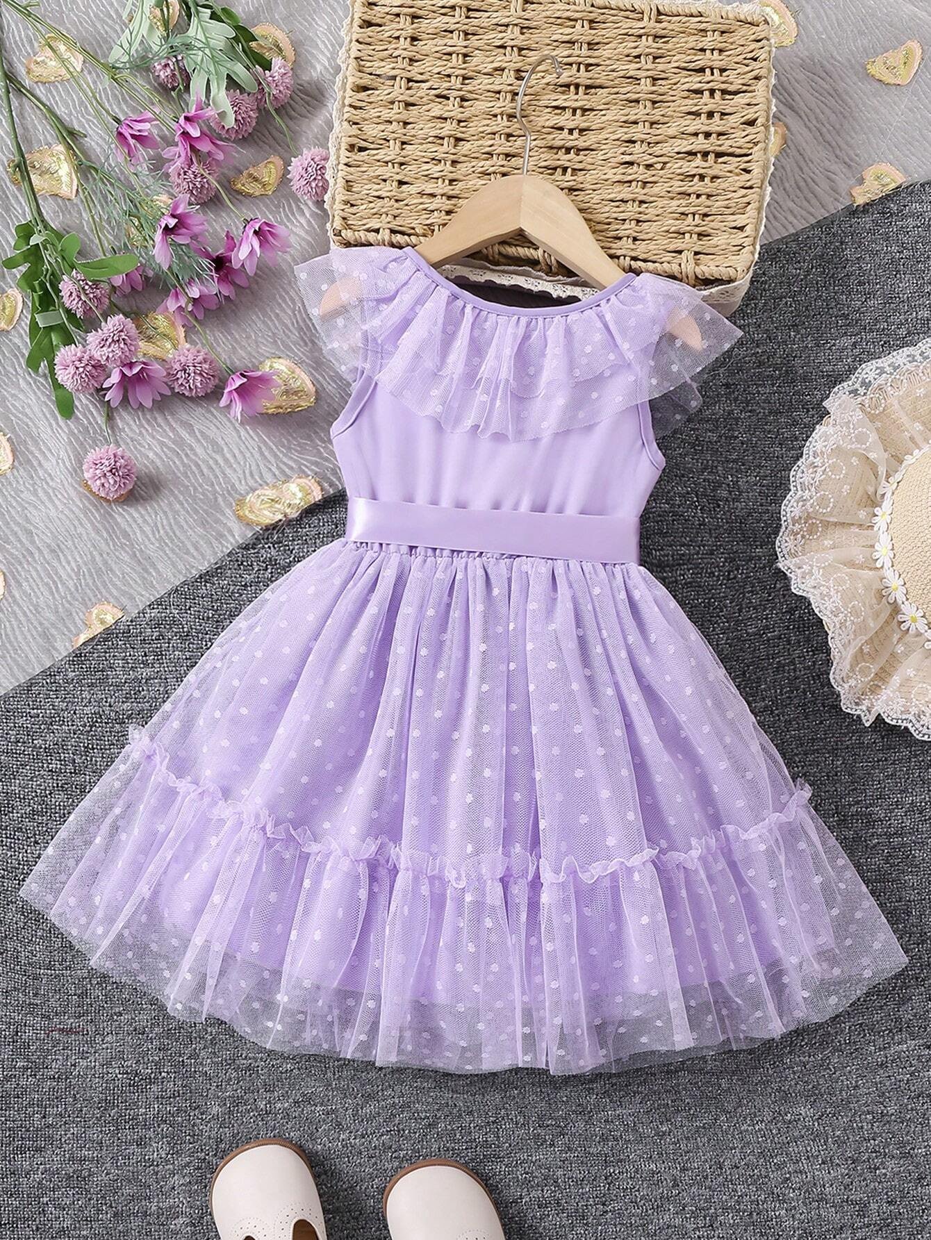 Vestido ribete con fruncido con cinturón de malla jacquard