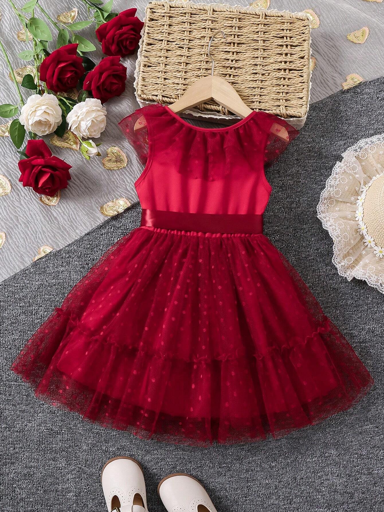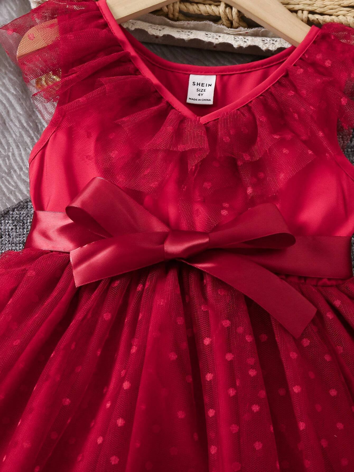 Vestido ribete con fruncido con cinturón de malla jacquard