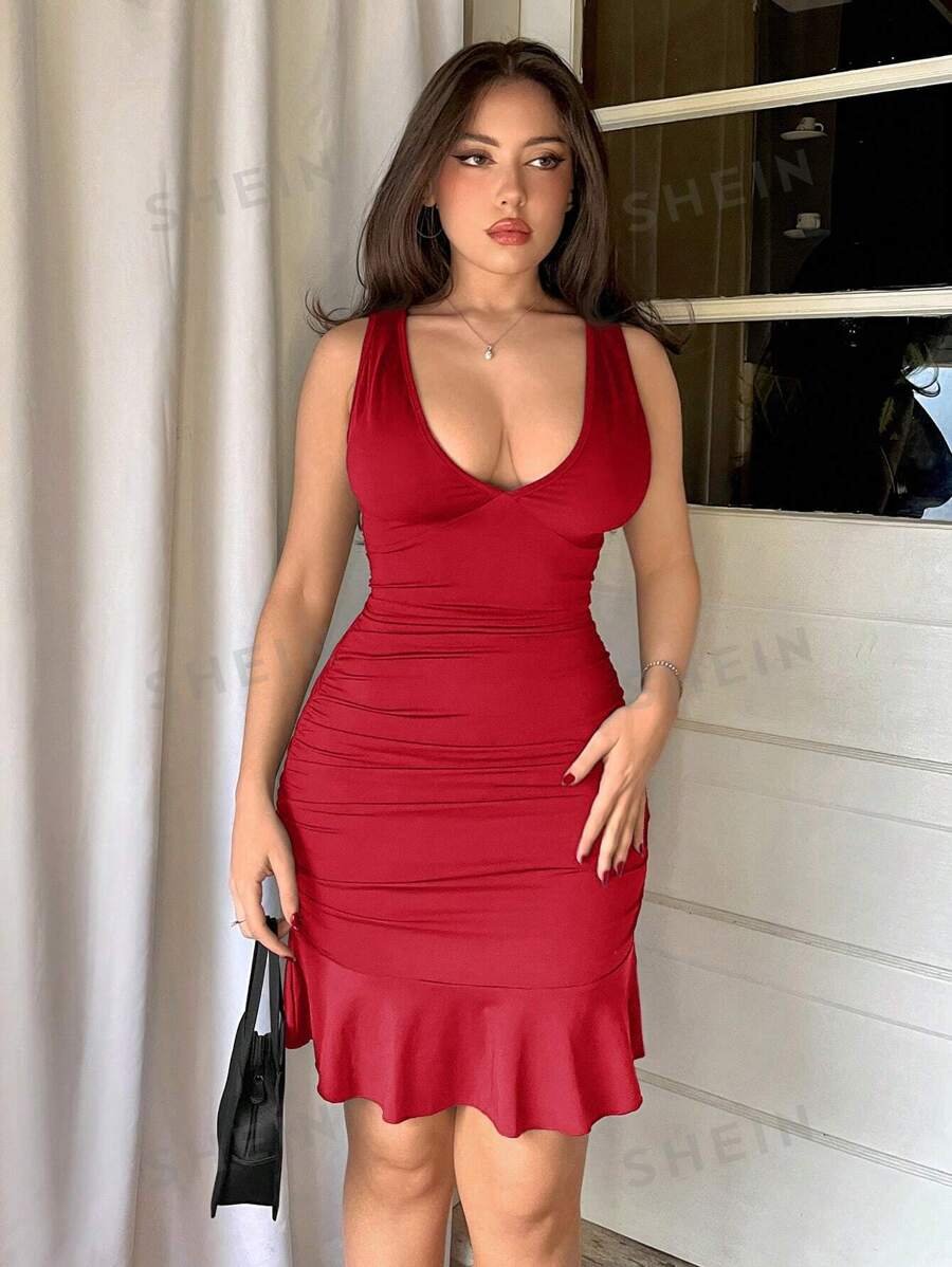 Vestido sexy de vuelta al hogar con espalda descubierta y amarres delanteros