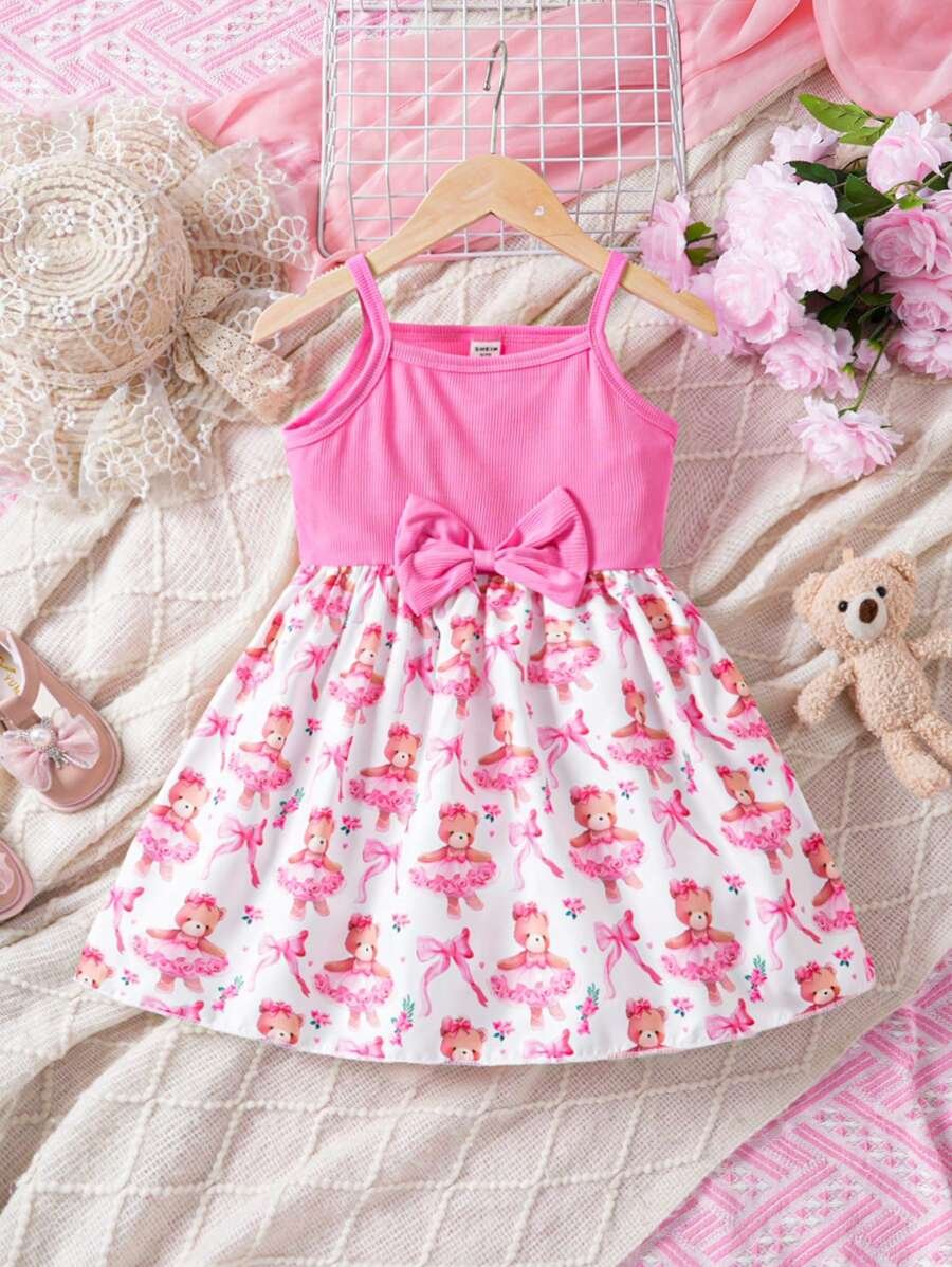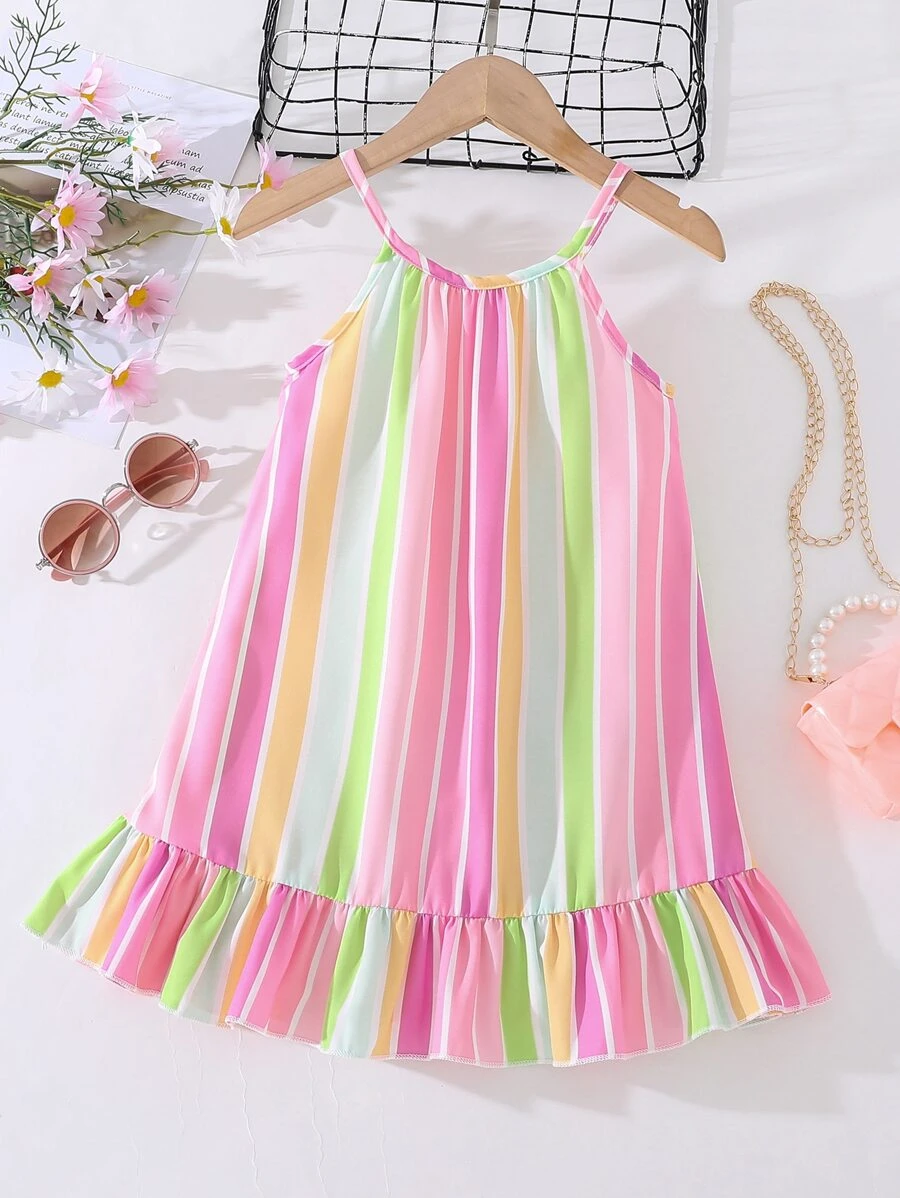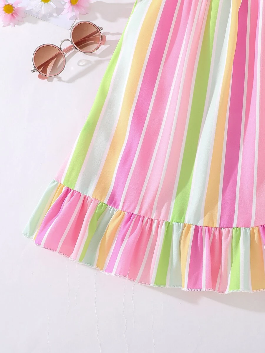 Vestido Sin Mangas Con Borde De Volante Con Estampado De Rayas Arco?ris Para Ni?a