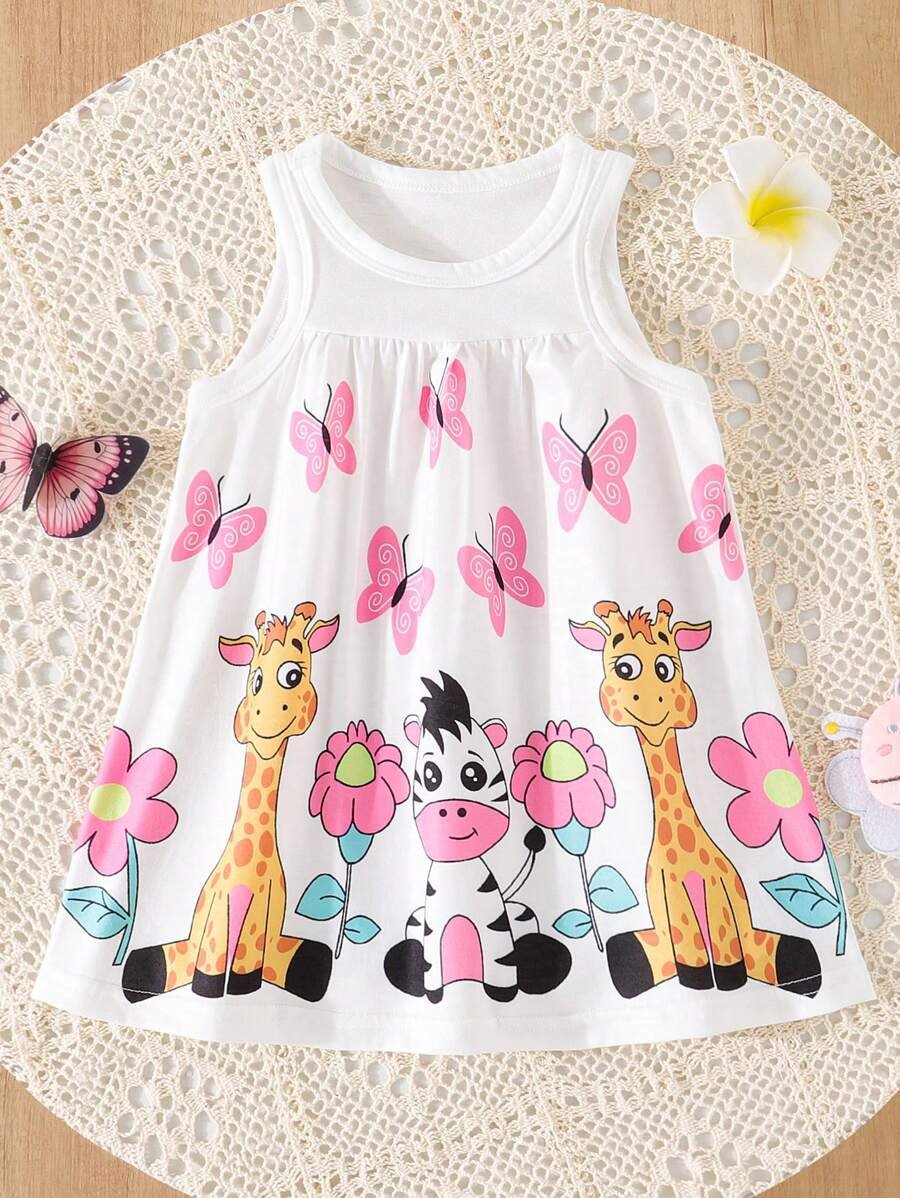Vestido sin mangas con diseño de vaca y jirafa lindos