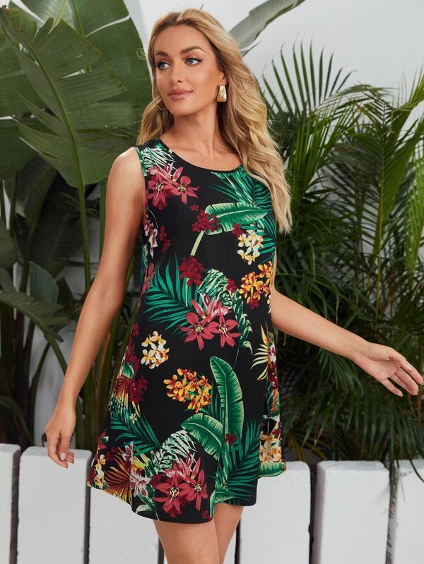 Vestido slip de espalda abierta con tiras cruzadas con estampado floral