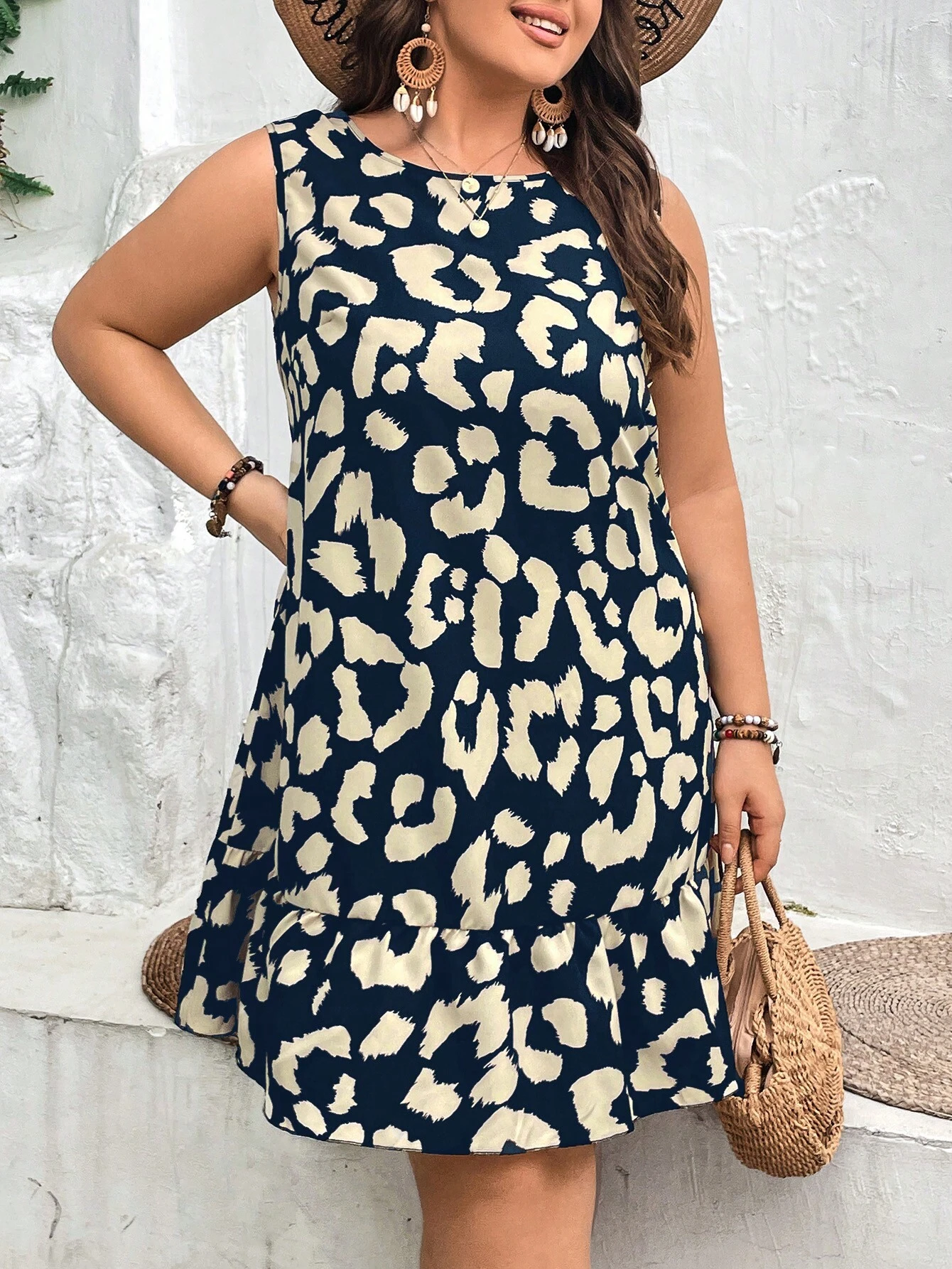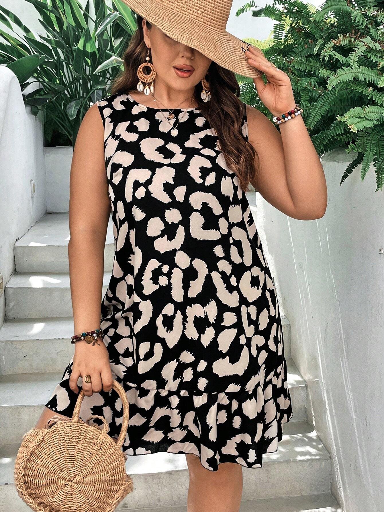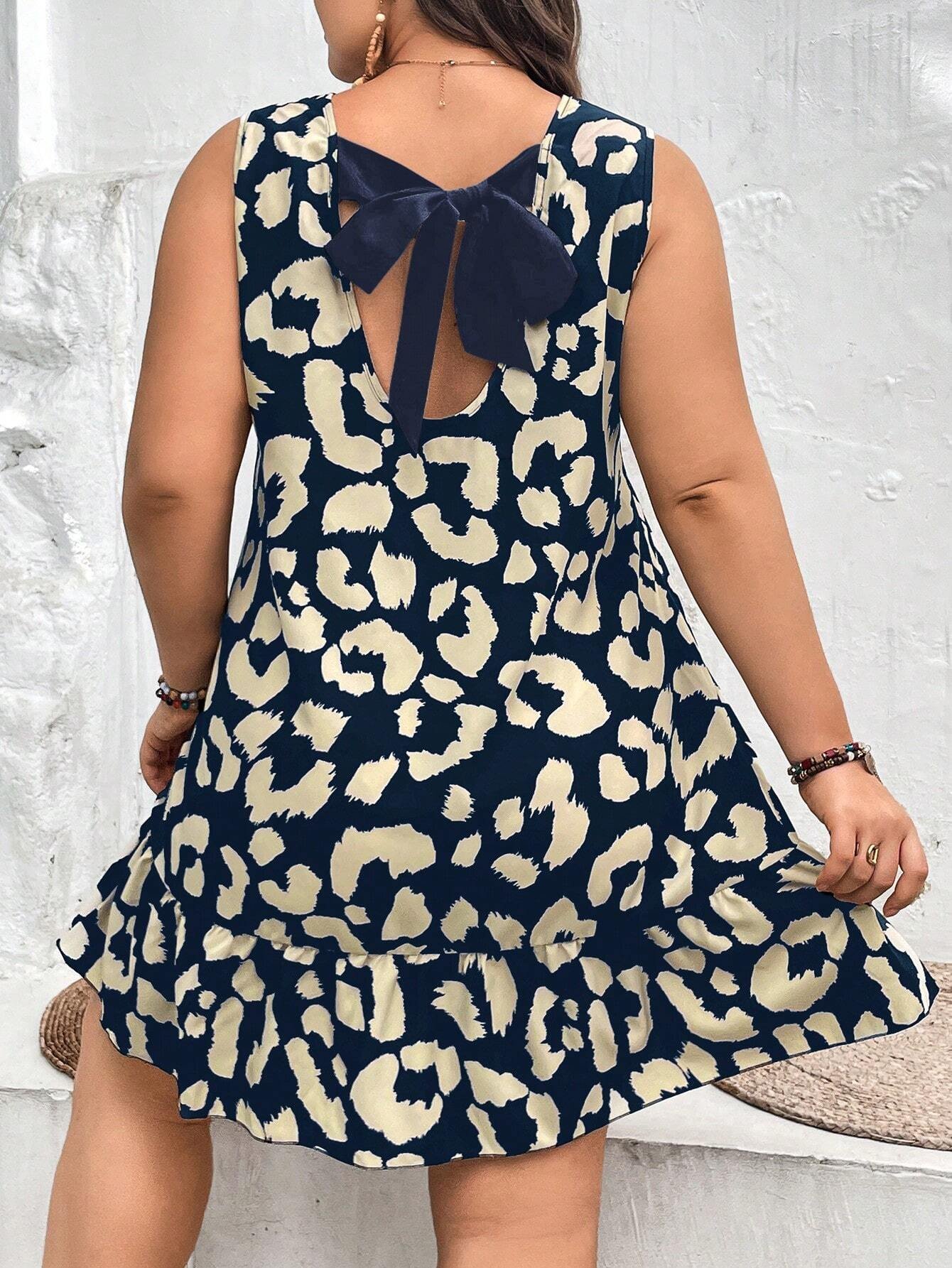 Vestido smock con estampado de leopardo con cord?n trasero bajo con fruncido