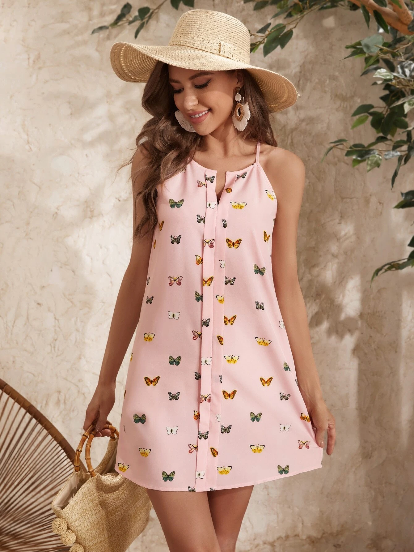 Vestido unicolor con tira cruzada de cuello halter de espalda abierta