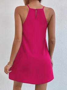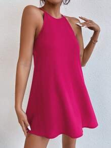 Vestido unicolor de espalda con abertura de ojo de cuello halter