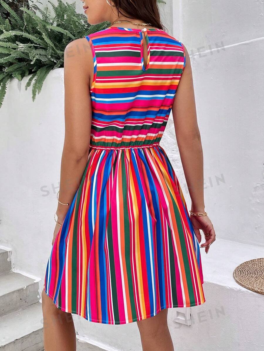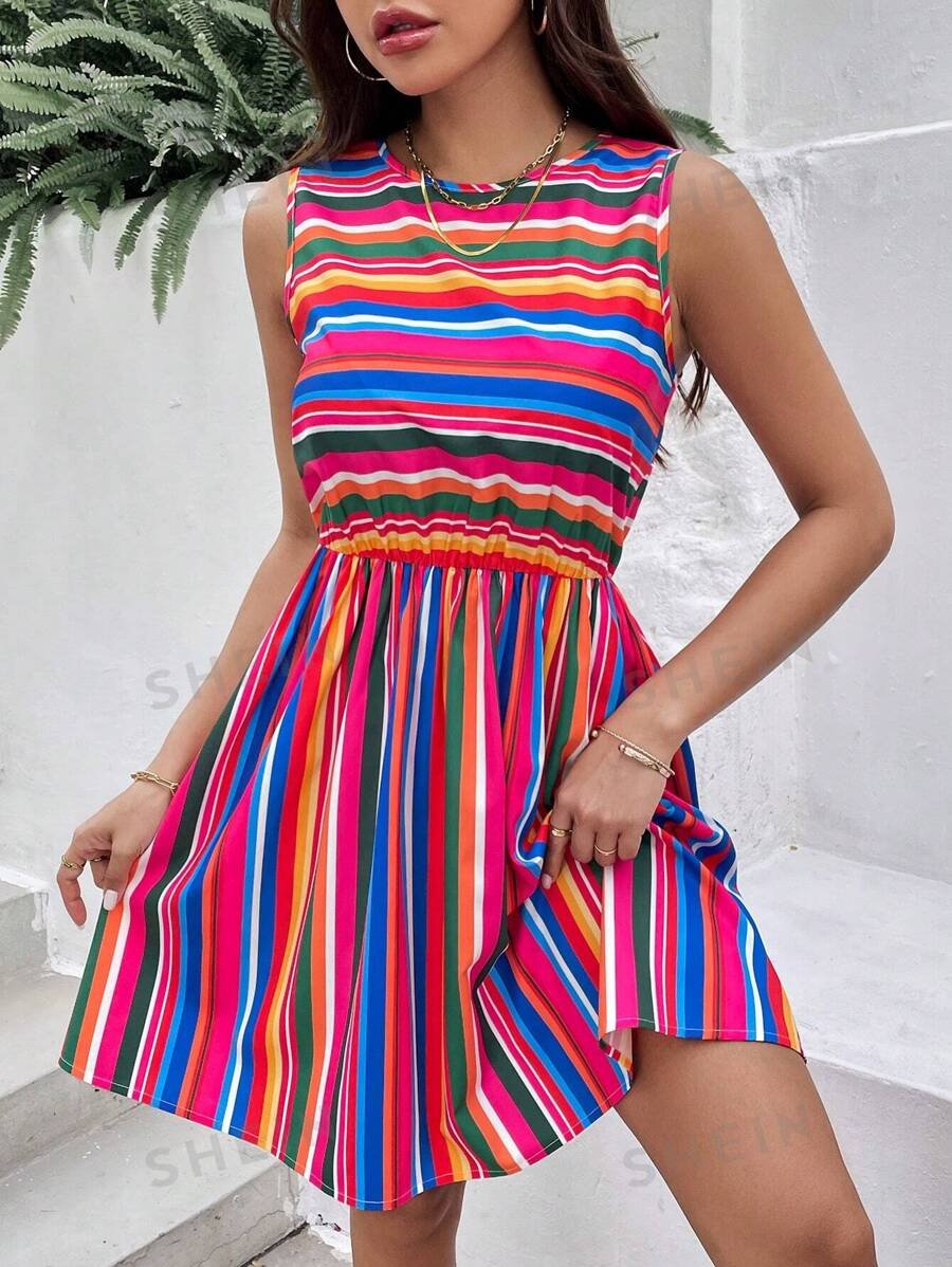 Vestido veraniego para mujer, casual y tejido sin mangas con rayas de colores