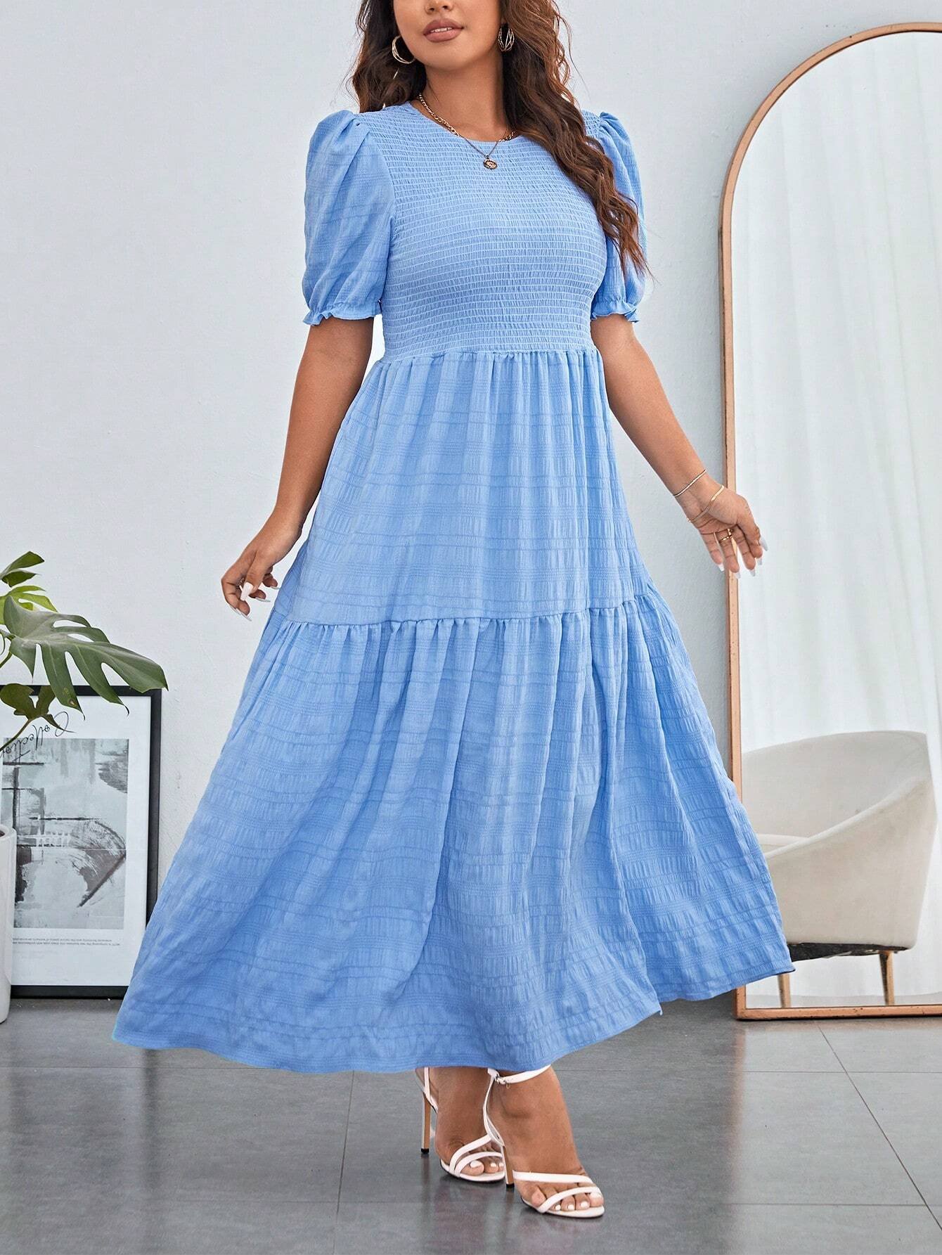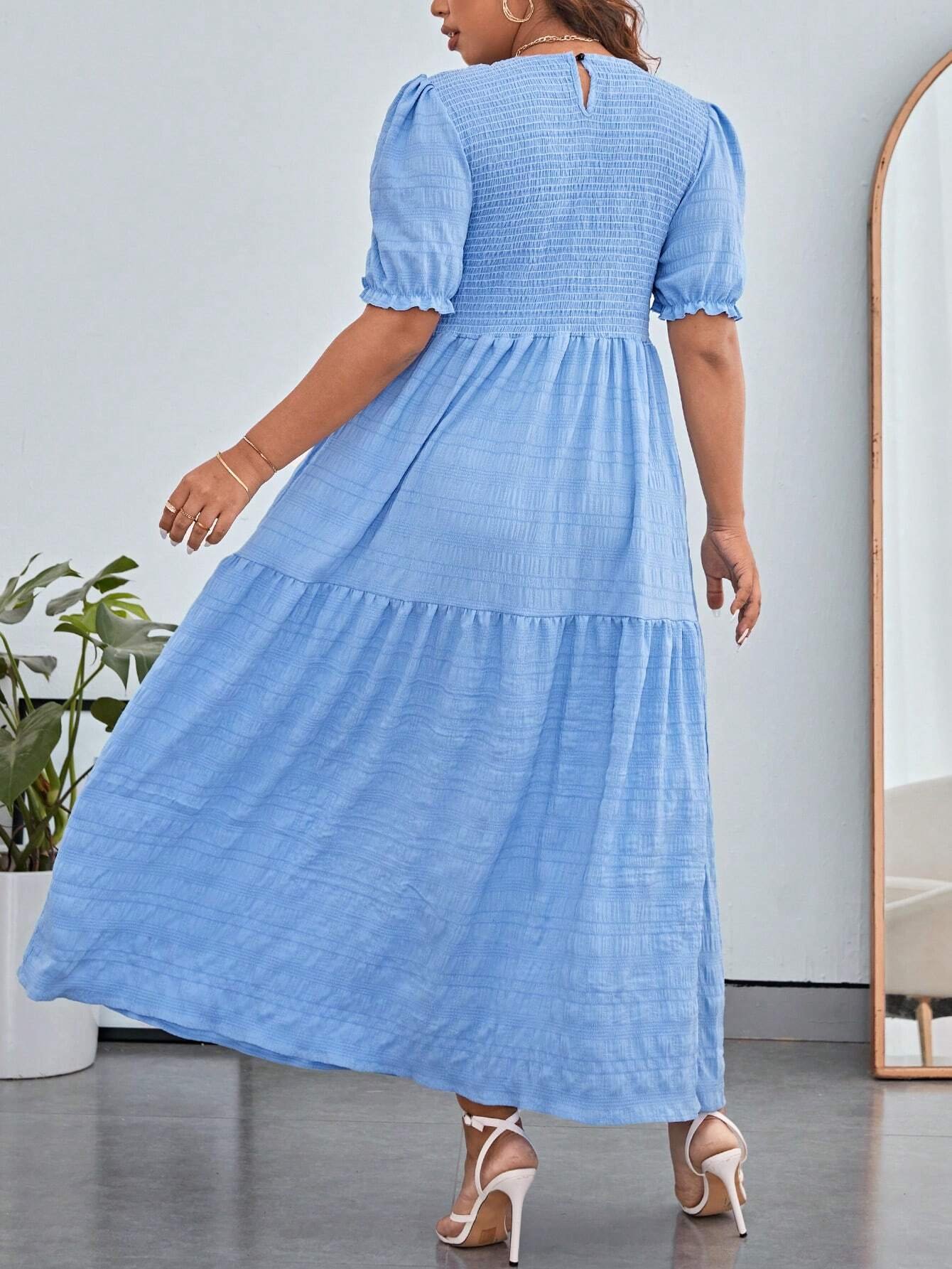 Vestidos Bajo con volante Fruncido Liso Casual