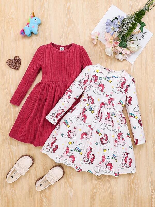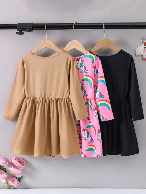 Vestidos De Manga Larga Encantadores De Unicornio Arco?ris Para Ni?as De Oto?o
